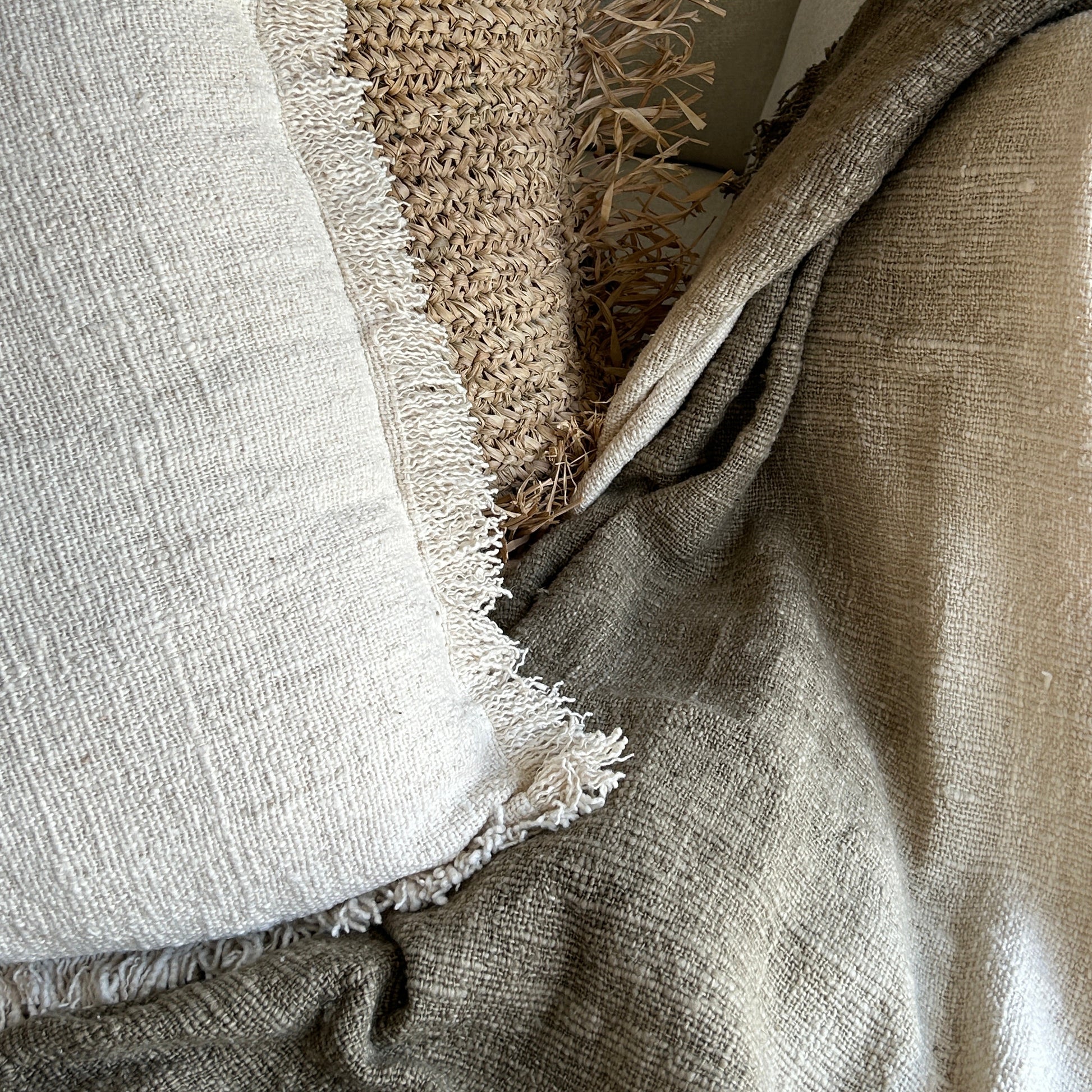 The Graduated handwoven Sage cotton throw has been carefully hand dyed using natural plant pigments. Soft in texture with rich colour, it's the perfect piece for layering over your bed or couch.