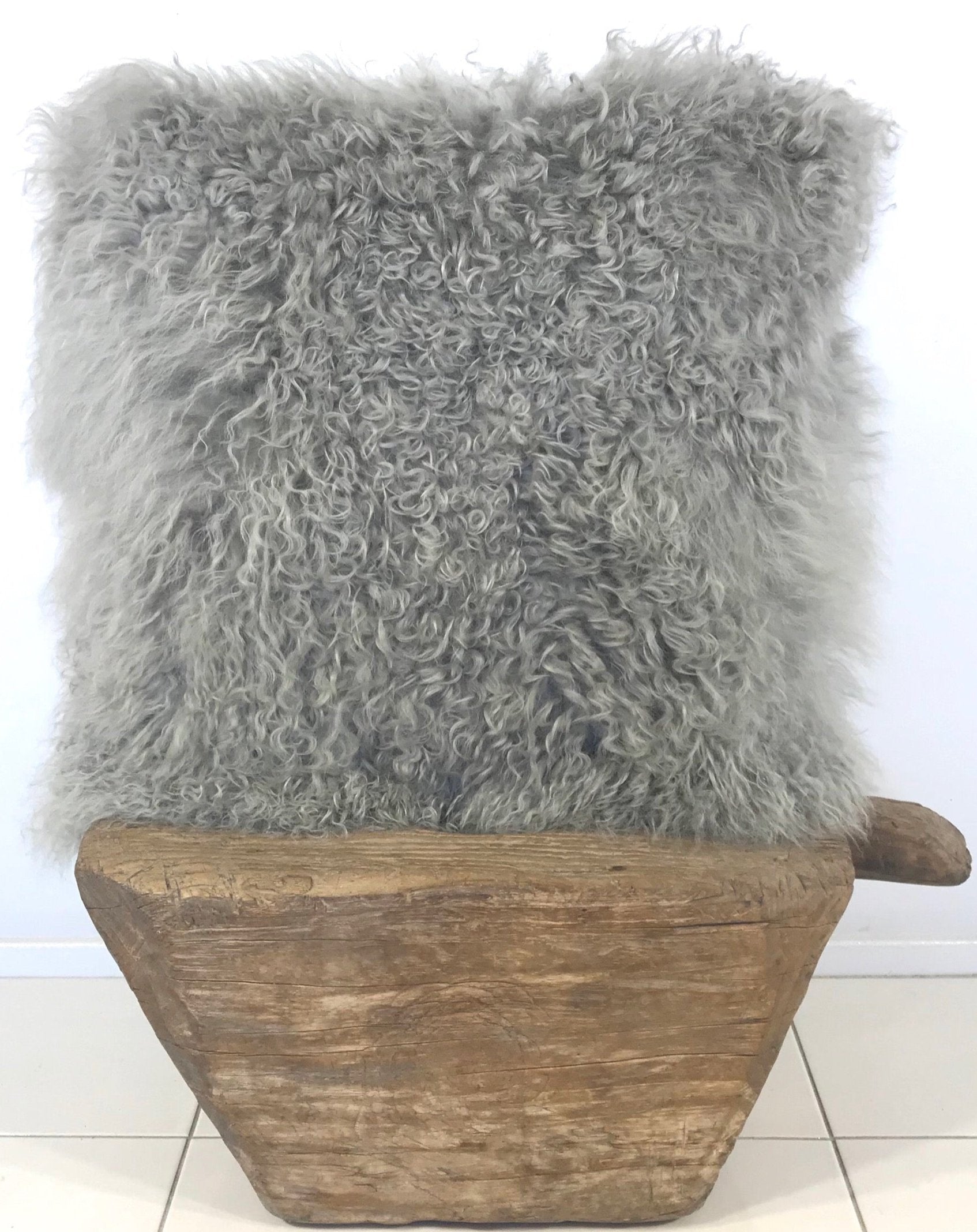 Grey Tibetan Fur Cushion with faux suede backing
