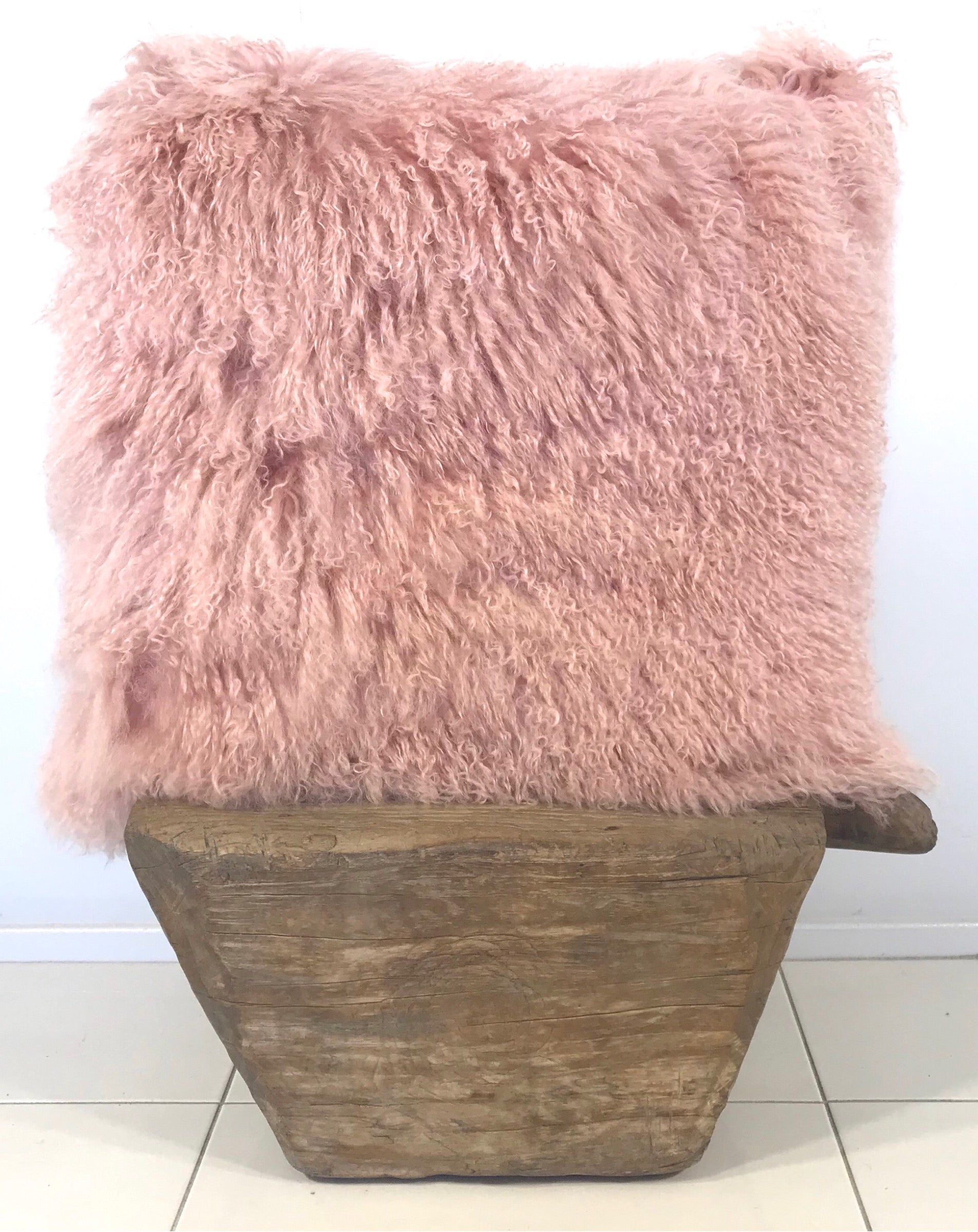 Musk Pink Tibetan Fur Cushion with faux suede backing